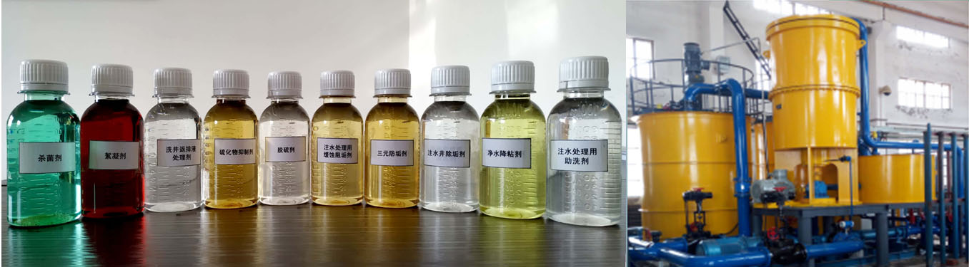 針對(duì)油田的實(shí)際情況,公司開發(fā)油田水處理助劑共10余種。產(chǎn)品主要包括:殺菌劑系列產(chǎn)品三項(xiàng)、絮凝劑、洗井返排液處理劑、硫化物抑制劑、脫硫劑、注水處理用緩蝕阻垢劑、三元防垢劑、除垢劑、凈水降粘劑、注水處理用助洗劑等產(chǎn)品,目前廣泛應(yīng)用在大慶油田。
