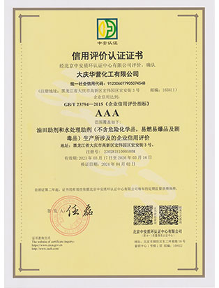 大慶華營(yíng)化工有限公司成立于2006年7月10日,注冊(cè)資金3300萬(wàn)元,公司類型為有限責(zé)任公司。位于大慶高新技術(shù)產(chǎn)業(yè)開發(fā)區(qū)宏偉園區(qū),是一家集油田助劑產(chǎn)品的研發(fā)、生產(chǎn)、銷售和技術(shù)服務(wù)為一體的現(xiàn)代化高新技術(shù)企業(yè)。公司注重科技創(chuàng)新,公司擁有18項(xiàng)自主知識(shí)產(chǎn)權(quán)。企業(yè)承擔(dān)過(guò)國(guó)家火炬計(jì)劃重點(diǎn)項(xiàng)目、國(guó)家科技型中小企業(yè)創(chuàng)新項(xiàng)目等,2011年被科技部火炬高新技術(shù)產(chǎn)業(yè)開發(fā)中心評(píng)為國(guó)家火炬計(jì)劃重點(diǎn)高新技術(shù)企業(yè)。公司十余種產(chǎn)品獲得中國(guó)石油天然氣集團(tuán)公司產(chǎn)品質(zhì)量認(rèn)可證書,其中粘穩(wěn)型驅(qū)油劑獲國(guó)家火炬計(jì)劃重點(diǎn)項(xiàng)目證書。公司憑借多年對(duì)大慶油田及周邊油田地質(zhì)情況的研究,可針對(duì)各油田地層特點(diǎn)調(diào)整產(chǎn)品的配方,更好地發(fā)揮各類油田助劑的性能。